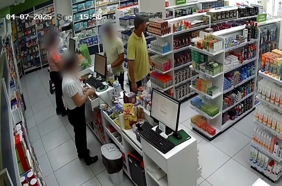 VÍDEO: Suspeito tranca funcionárias de farmácia e rouba dinheiro, fraldas e chupetas