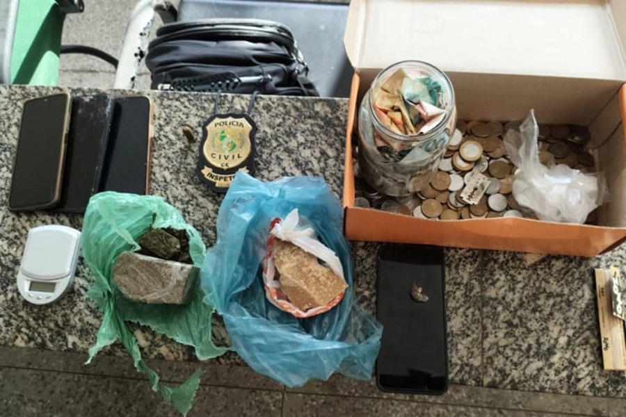 Durante a operação, foram apreendidos celulares, balança, drogas e dinheiro | Foto: Reprodução/ Polícia Civil