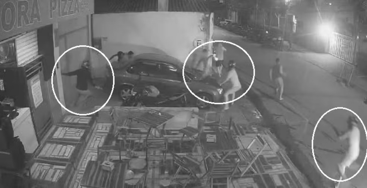 Na sexta-feira (21), um entregador e um cliente foram mortos em uma pizzaria. O ataque foi registrado por câmeras de segurança. De acordo com a polícia, os criminosos chegaram em três motocicletas com a intenção de matar um funcionário, que foi alvejado múltiplas vezes, inclusive na cabeça. O cliente, que foi morto por engano, estava lanchando no local.
