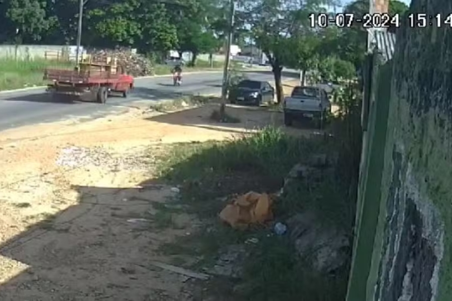 Um motociclista morreu na tarde dessa quarta-feira (10) após colidir com a lateral de um caminhão na Rua Cônego Eduardo Araripe, no Bairro Banguê, em Pacajus, Região Metropolitana de Fortaleza. O acidente foi registrado por uma câmera de segurança.