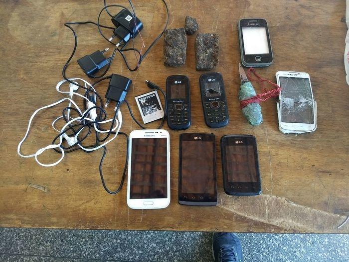 Antes da tentativa de fuga, por volta de 8h30min, os agentes realizaram uma vistoria na unidade prisional. Além dos celulares, porções de maconha, carregadores e um objeto cortante foram apreendidos.