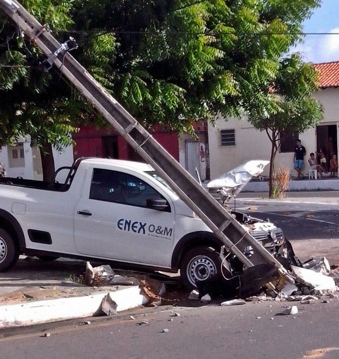 Um carro Volkswagen Saveiro de cor branca, modelo 2014/2015, com placas PVA-9451 de Belo Horizonte-MG, colidiu violentamente em um poste de energia localizado na Rua Samuel Santos, no bairro Campos, em Parnaíba, litoral do Piauí. Com o impacto, a estrutura foi arrancada do solo e só não caiu porque os fios de alta tensão não romperam. O acidente aconteceu na tarde deste domingo (21/06) por volta das 15h.