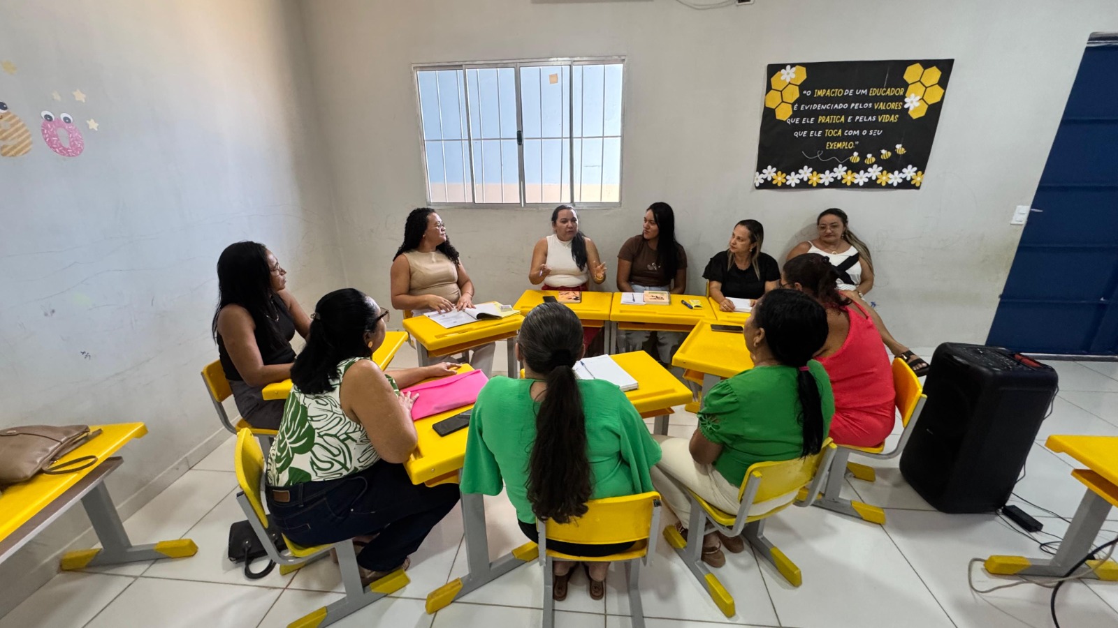 Durante o encontro, a formadora da Educação Infantil, professora Lucelita Ferreira, conduziu uma reflexão sobre “O Planejamento na Educação Infantil: a criança em foco, apontando caminhos”. A proposta trouxe uma abordagem leve e rica em trocas de experiências, destacando a importância de um planejamento pedagógico centrado na criança, com ênfase em rotinas educativas que valorizem a literatura infantil e as práticas antirracistas.
