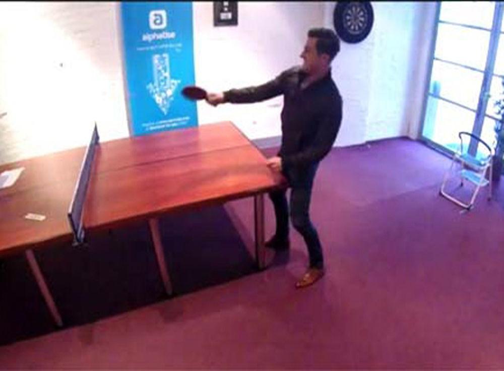 A empresa é daquelas que têm jogos e área de descanso para os empregados. (foto acima)