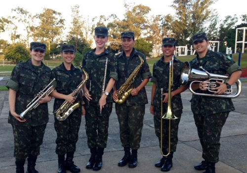 Elas tinham a carreira militar como um sonho, mas foi na harmonia que encontraram a inspiração. Seis jovens, entre 19 e 26 anos, formam o primeiro grupo de mulheres a ingressar no curso de formação de sargento de música do Exército. ?Foi perfeito: música e carreira militar. Era tudo o que eu queria?, comemorou Flavia Monica, de 19 anos, de São João del-Rei, em Minas Gerais.