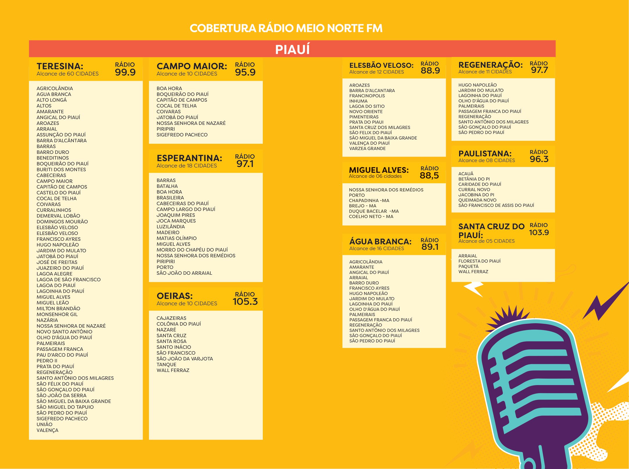 O Grupo Meio Norte tem uma seleção campeã que toca o povão, sintonizado nas ondas do rádio que está no ar. A Meio Norte FM, BOA FM, Jornal Meio Norte FM e Cocais FM, são uma referência de tecnologia e inovação, com programas ao vivo, via satélite, tocando no rádio. Diversidade de conteúdo, qualidade de transmissão, seleção musical que agrada ao bom gosto, jornalismo de primeira é o que há de melhor para tocar as paradas de sucesso, levar informação e tocar a trilha sonora que embala o coração.