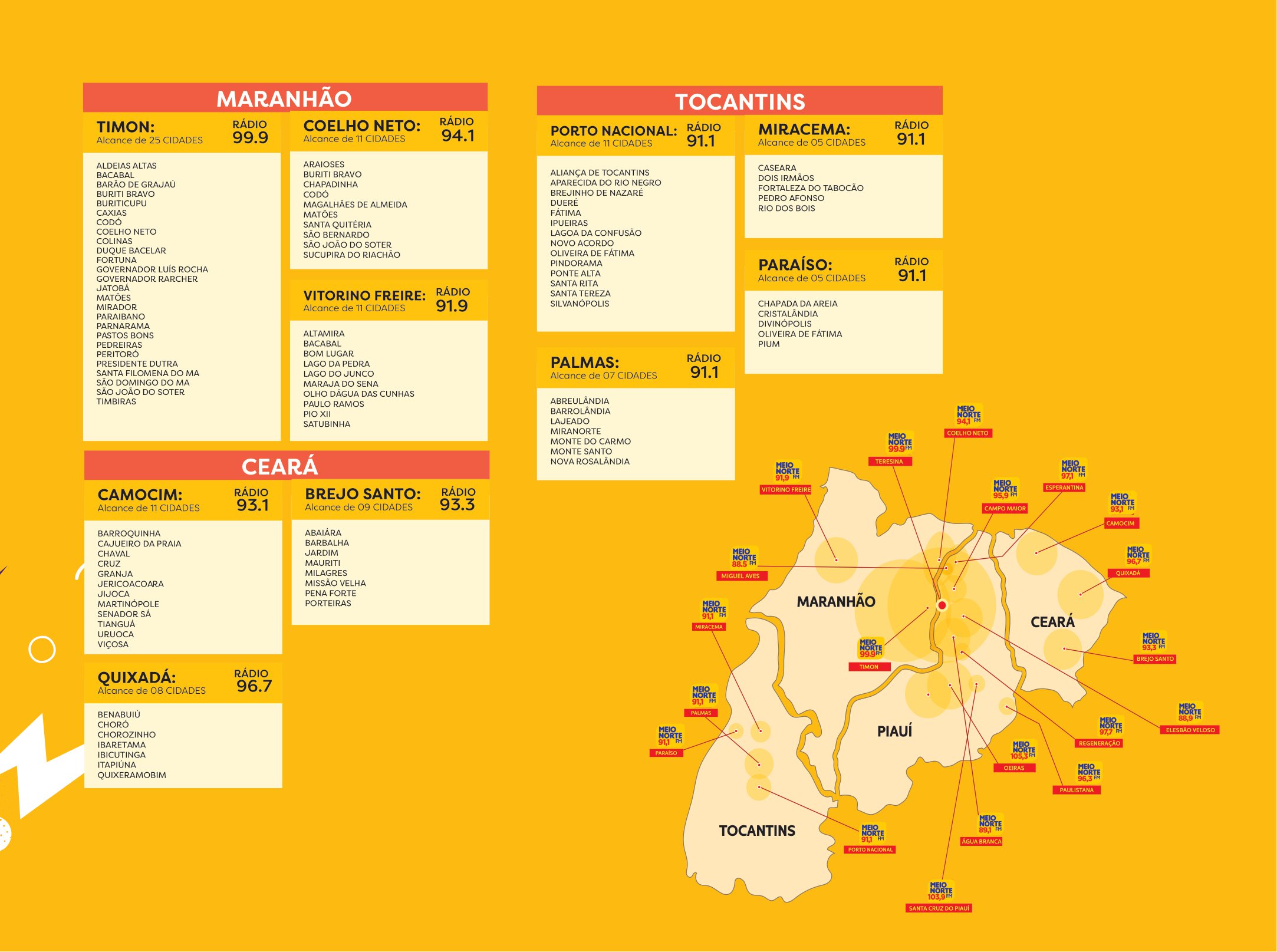 Uma variedade de conteúdo para todos os públicos, tudo movido pelo compromisso de fazer bem feito. A Rede Meio Norte no ranking de cobertura já é considerada a 6° maior rede de televisão do Brasil, transmite sua programação em canal aberto em 7 Estados: Piauí, Maranhão, Tocantins, Pará, Roraima, Rondônia e Acre e chega em mais 18 Estados por empresas repetidoras de sinal parceiras da rede, está presente em todas as parabólicas do país pela Banda KU, alcançando assim 20 milhões de famílias.