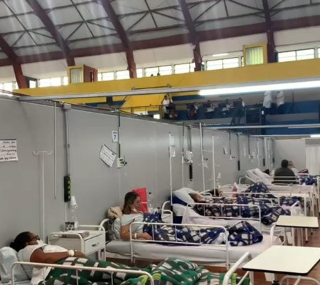 De acordo com a prefeitura da cidade, há 128 pacientes internados neste domingo (9) nos hospitais de campanha – 73 no Complexo Pedro Dell'Antonia e 55 na UFABC, todos em leitos de enfermaria.