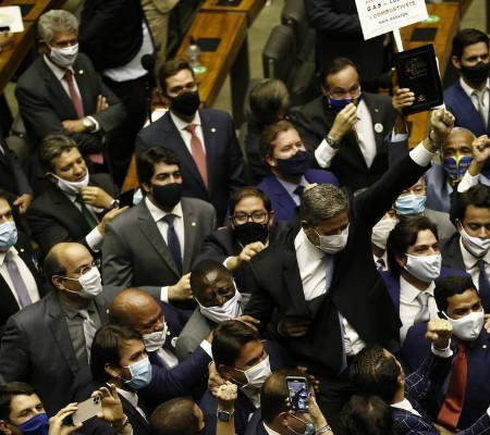 Apesar das cabines de votação espalhadas pela Câmara, houve diversas aglomerações durante e após a apuração — no plenário e quando Arthur Lira comemorou sua vitória em uma mansão de Brasília com cerca de 300 pessoas.