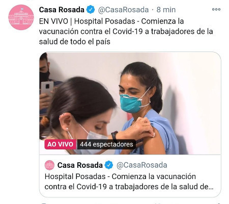 De acordo com o "La Nación", ao longo de janeiro e fevereiro, mais 20 milhões de doses chegarão ao país para completar a vacinação das equipes de saúde e das forças de segurança.