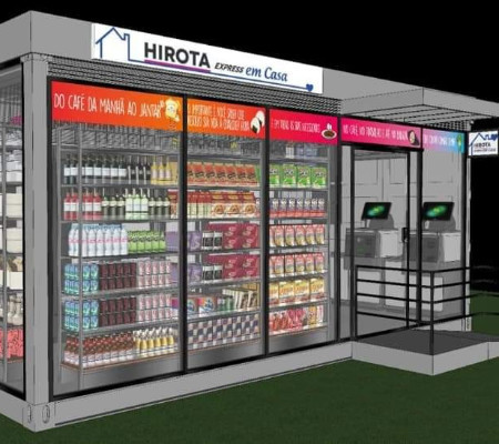Em meados do mês, a rede de supermercados Hirota inaugura duas lojas em áreas comuns de dois condomínios residenciais em São Paulo. Totalmente automatizada e sem a presença de gente, a loja vai funcionar dentro de um contêiner adaptado, inclusive com uma parte refrigerada e vitrine. A intenção é fazer dessa pequena loja uma espécie de despensa, o lugar da casa onde os antigos guardavam os mantimentos.