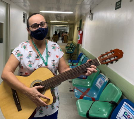 O encontro de Luciana com o seu talento começou bem antes dela se desenvolver na área da saúde, mas isso nunca a impediu de acolher sua outra paixão: cuidar de pessoas. Um dos lemas da profissional, que atua na linha de frente no combate ao vírus, é “quem canta, ora duas vezes”. “Eu testei positivo para o coronavírus no ano passado e ele (o instrumento) foi meu refúgio. Eu me identifico muito com a música, tanto gospel como popular. Meu violão sempre anda no meu carro”, afirma.