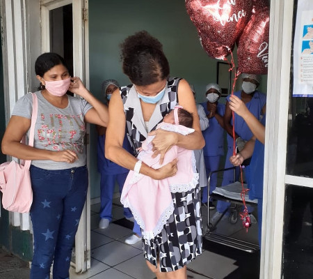 A mãe teve covid na gestação e só conheceu a filha depois de 18 dias internada na UTI da Maternidade Dona Evangelina Rosa