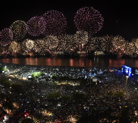Na última festa de réveillon carioca, as areias de Copacabana ficaram tomadas por mais de 3 milhões de pessoas. A tradicional queima de fogo, com programação de shows durante toda a noite do dia 31 de dezembro, é um dos principais cartões postais do Brasil para a data, sendo a maior festa do país.
