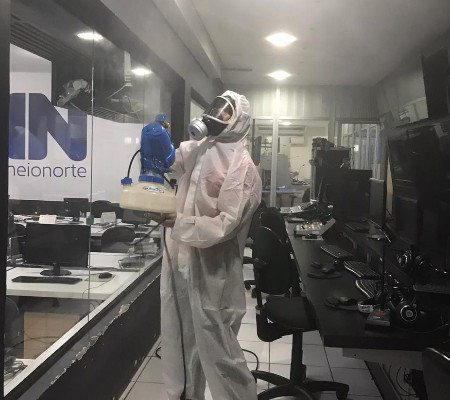 O Grupo Meio Norte de Comunicação (GMNC) realizou neste domingo (5), a terceira etapa de sanitização em espaços da sede por uma empresa certificada pela Agência Nacional de Vigilância Sanitária (Anvisa). O local passou por uma desinfecção total, um processo para eliminar bactérias, fungos, ácaros e vírus nos ambientes, além de higienização de equipamentos, mobiliários e os interiores de veículos das equipes. A empresa contratada, líder no mercado piauiense, utilizou equipamentos e produtos registrados apropriados para o protocolo de combate a pandemia de Covid-19, exigido pelo Ministério da Saúde.
