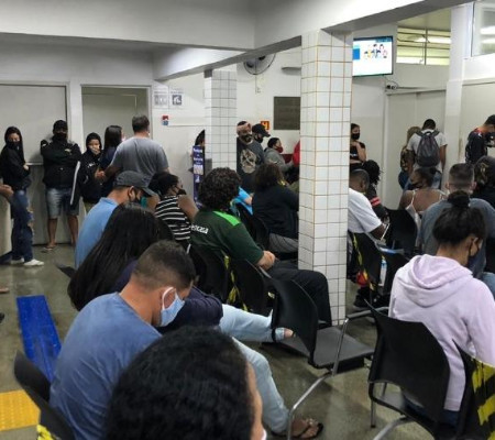 Pelo menos quarenta pessoas dividiam o local apertado na noite de segunda. Alguns esperavam há mais de 5 horas, parte com suspeita de infecção pelo novo coronavírus. Procurada, a prefeitura não se pronunciou.