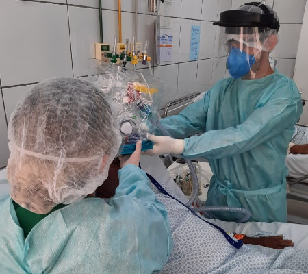 O fisioterapeuta da equipe do hospital, Raimundo Miranda Neto, explica sobre as formas de terapias respiratórias. “O serviço de fisioterapia atua com diversas medidas terapêuticas importantes, dentre elas, a de cateter nasal e a ventilação não invasiva. Dentro dessa ventilação não invasiva, está essa interface Helmet, que propicia uma otimização dessa terapia uma vez que possibilita a utilização do uso mais prolongado dessa ventilação”, destaca.