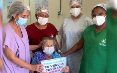 Uma idosa de 104 anos recebeu alta na quarta-feira (11). Dona Nega, como é carinhosamente chamada, é da cidade de Brasileira, reconhecida como a pessoa mais idosa do município.