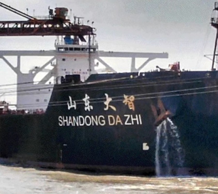 De bandeira de Hong Kong, Shandong da Zhi foi fretado pela Vale para o transporte de minério de ferro. É um navio cargueiro construído em 2012. Seu comprimento total é de 360 metros e sua largura é de 65 metros.
