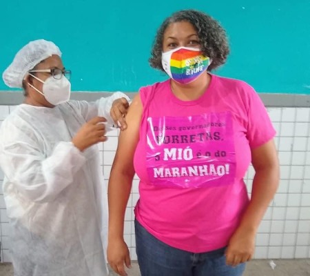 A funcionária pública Marinalva Santana, que trabalha como professora no Estado do Maranhão, além de ser uma das líderes do Grupo Matizes, que milita pela causa LGBT no Piauí, recebeu a primeira dose da vacina contra a Covid-19. A professora se encaixa nos grupos prioritários elencados pelo Governo do Estado do Maranhão.