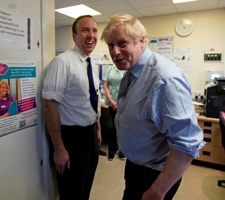 O primeiro-ministro Boris Johnson e seu ministro da Saúde, Matt Hancock, em um hospital no ano passado | Foto: POOL New / REUTERS