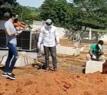 Um vídeo que circula nas redes sociais tem emocionado quem o assiste. Nas imagens, o músico Rafael Borges, de 20 anos, toca violino enquanto o corpo da mãe é enterrado no Cemitério de Messianópolis, distrito de Moiporá, cidade no oeste goiano. A melodia se mistura ao choro daqueles que mais amavam Selma Maria Borges de Oliveira, que morreu de Covid-19 aos 46 anos.