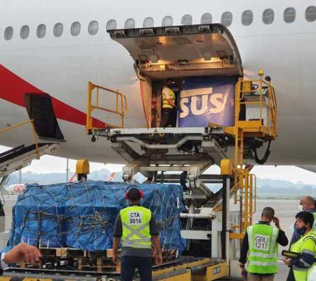 Uma aeronave, proveniente da China, trará o carregamento da vacina, que será levado à Bio-Manguinhos/Fiocruz, onde as vacinas serão fabricadas.
