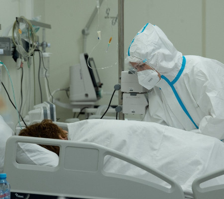 Trabalhador médico cuida de um paciente com Covid-19 | Denis Grishkin/Moscow News Agency/Handout via REUTERS