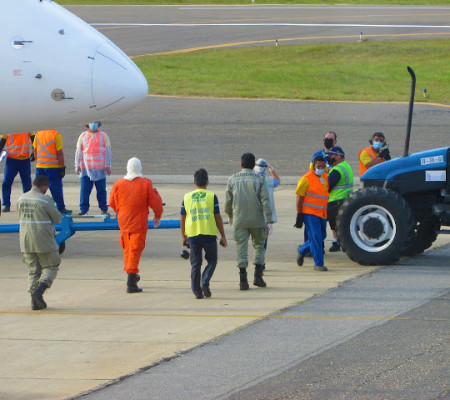 Diante da situação, uma equipe do Samu, do Corpo de Bombeiros e da Vigilância Sanitária foram acionadas. As seis pessoas foram retiradas e levadas para fazerem o teste do coronavírus no hospital. Os demais tripulantes também desceram para que a aeronave fosse desinfectada.