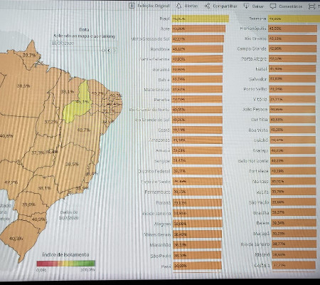O Piauí ficou em primeiro lugar com 46,05%, no índice de isolamento social em todo o Brasil neste fim de semana. De acordo com dados da Secretaria de Saúde (Sesapi), as boas taxas de isolamento têm feito cair a transmissibilidade do vírus no Piauí. Teresina também foi a capital do país que registrou maior índice de isolamento social no sábado (18) quando 49,0% da população permaneceu em casa. Os dados são da startup Inloco, que monitora a localização de usuários de smartphones quando eles se conectam à internet.