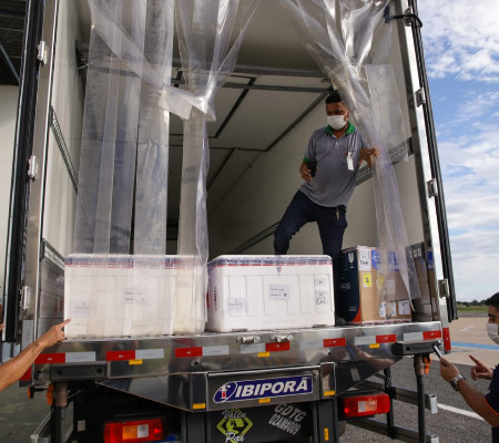 O Piauí recebeu na tarde desta segunda-feira (3), mais um lote de vacinas contra a Covid-19. A nova remessa com 96.850 doses chegou no aeroporto de Teresina por volta das 16 horas. As vacinas foram encaminhadas para a Rede de Frios do estado para na sequência dar início a distribuição aos municípios.