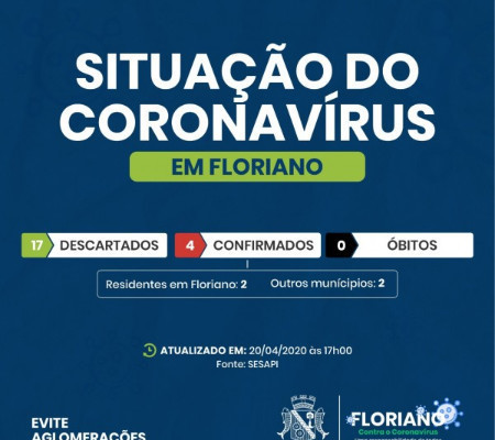 O prefeito de Floriano, Joel Rodrigues; o secretário municipal de Saúde, James Rodrigues e o diretor clínico do Hospital Regional Tibério Nunes, Justino Moreira, confirmaram, o total de 4 casos de coronavírus em Floriano. Trata-se de uma profissional de saúde do Município de Floriano e seu esposo; uma Idosa de 73 anos, oriunda de Colônia do Gurguéia e um rapaz de 21 anos, do município de Itaueira, que chegou ao HTN na última quinta-feira, com febre alta e falta de ar. Segundo o secretário de Saúde, o casal de Floriano fez todos os exames, estão tomando medicação e sendo acompanhados de casa. A paciente de Colônia do Gurguéia está internada, faz uso de oxigênio, mas não está em UTI. O paciente de Itaueira permanece internado, mas evoluiu bem e não está fazendo uso de oxigênio.