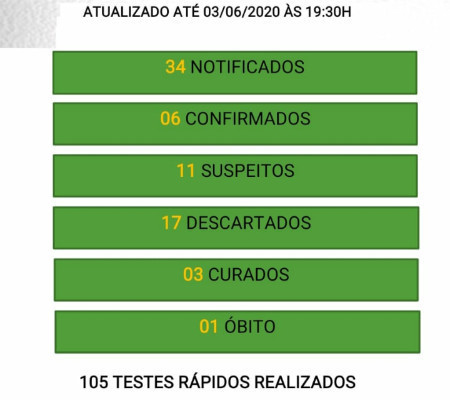 A secretaria ainda informou que três testes foram realizados na manhã de hoje (03), todos com resultados NEGATIVOS.