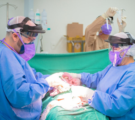 A missão dos profissionais de saúde do Hospital Unimed Primavera (HUP) de salvar vidas ganhou um toque especial na manhã do último sábado, dia 05 de junho. Uma paciente grávida, positiva pra COVID-19, com idade gestacional de quase 38 semanas, precisou realizar uma cesariana de urgência, após ser constatado, por meio de exames de imagem, o início de sofrimento fetal do bebê.