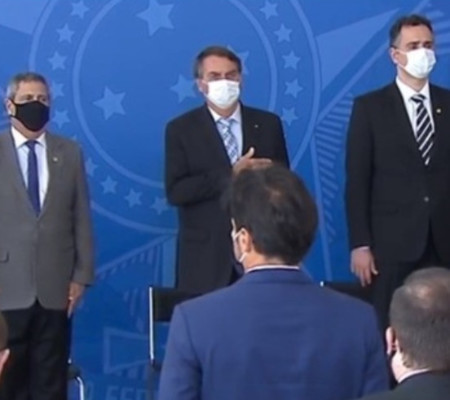 Em uma cerimônia na qual ele e as demais autoridades usavam máscara, o presidente Jair Bolsonaro sancionou nesta quarta-feira (10) a lei que facilita a compra de vacinas contra a Covid-19. Geralmente, Bolsonaro não usa máscara — nem os ministros nas aparições públicas ao lado do presidente.