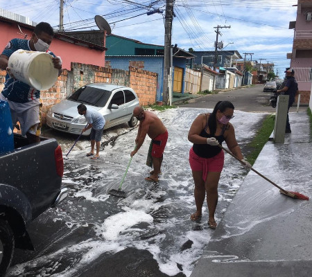 Moradores do bairro Betânia, em Manaus, se reuniram na manhã deste domingo (17) para realizar a higienização de ruas em uma tentativa desesperada de conter o avanço do contágio de Covid-19. Cerca de 20 moradores da região participaram da atividade, que é realizada pela segunda vez - a primeira foi em 2020, no primeiro pico da Covid-19. Informações do G1.