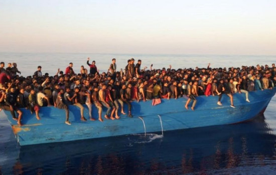 O barco azul parecia "transbordar" de pessoas, numa imagem que dá a dimensão do desespero de migrantes que buscam uma nova vida na Europa. A guarda costeira italiana contabilizou 539 passageiros, entre eles mulheres e crianças sentadas perigosamente nas laterais da embarcação, com as pernas penduradas para fora.