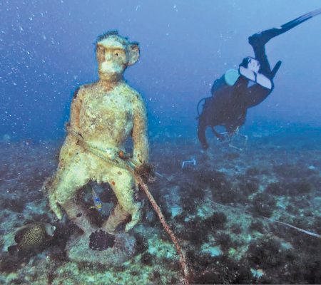 Pesquisadores do Instituto de Ciências do Mar (Labomar) encontraram uma estátua em forma de macaco feita de concreto a 25 metros de profundidade no oceano, na costa de Fortaleza. O achado ocorreu durante mergulho para mapear os diferentes tipos de espécies que vivem no Parque Estadual Marinho da Pedra da Risca do Meio. Desde o dia 10 de julho, equipes do órgão realizam expedições com assistência da operadora de mergulho Mar do Ceará. Até agora, foram realizados seis mergulhos entre 17 e 30 metros de profundidade. O objetivo é identificar e quantificar espécies no fundo do mar e aferir temperatura, oxigênio e salinidade através de coletas de água.