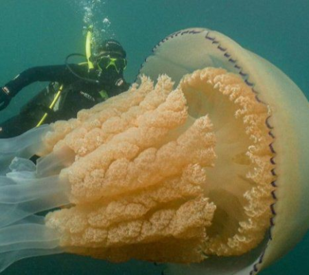 It’s the largest species of jellyfish found in British waters.@BBCCornwall @Shark_ManDan pic.twitter.com/LjxvHS53aB