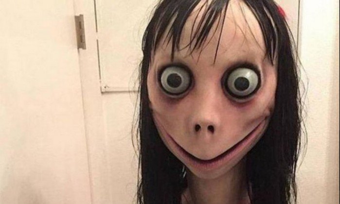 A personagem, criada a partir de uma escultura de um artista plástico japonês, tem olhos esbugalhados, pele pálida e sorriso sinistro e ficou conhecida depois que um vídeo chamado “Desafio Momo” viralizou na internet no ano passado.