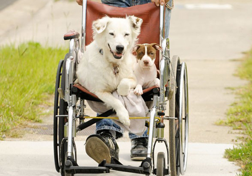 O americano Robert Crews foi flagrado levando seus cães de estimação para passear em uma cadeira de rodas em Jacksonville, na Flórida (EUA). Segundo Crews, a cadela "Angel" tem 18 anos e, por isso, tem dificuldades para caminhar. Já o outro cachorro chamado "Patches" ainda é um filhote, mas prefere passear na cadeira também.