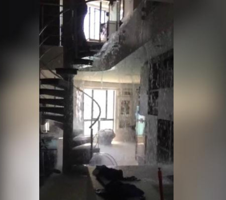 Um vídeo da cena foi compartilhado nas redes sociais. É possível ver que muita água descia do teto do apartamento. Segundo informações de testemunhas, o local tinha sido reformado recentemente. O apartamento ficou extremamente alagado.