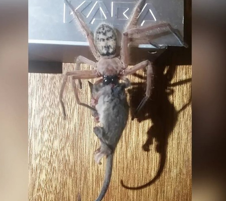 Uma foto em que uma aranha caçadora come um gambá-pigmeu viralizou após a australiana Justine Latton publicá-la em um grupo no Facebook.