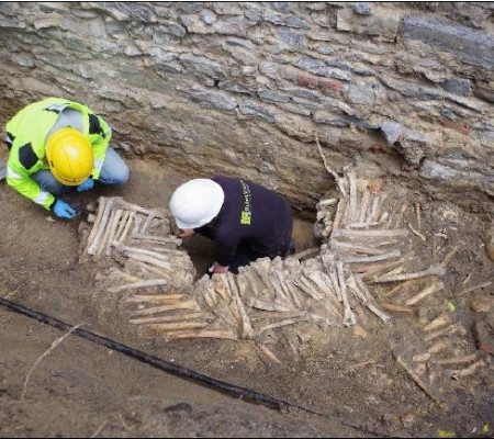 Arqueólogos encontram paredes de ossos humanos em catedral medieval