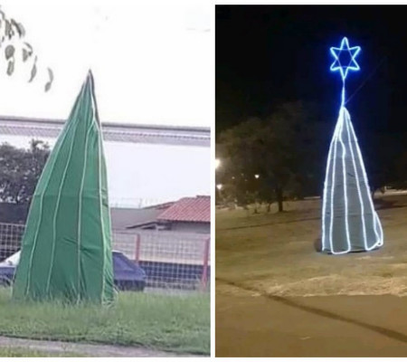Uma árvore de Natal colocada em uma rotatória de Rio Claro (SP) virou motivo de piada na internet e gerou memes de internautas. O enfeite, de estrutura simples, foi comparado pelos moradores a oca, tenda e barraca de acampamento. As informações são do G1.