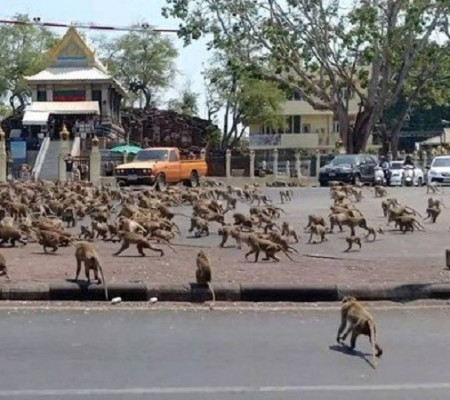 Bandos de macacos famintos estão sendo vistos vagando por ruas de Lopubri (Tailândia) após os costumeiros turistas desaparecerem da região por causa do temor do coronavírus. Sem os visitantes, as centenas de animais perderam a principal fonte de alimentação. As informações são do Extra.