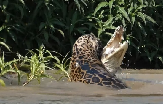Se você ainda não conhece as habilidades de caça de uma onça-pintada , chegou o momento. Um exemplar da espécie mergulhou em um rio da região norte do Pantanal e saiu da água com um jacaré entre os dentes, em uma ação brutal.