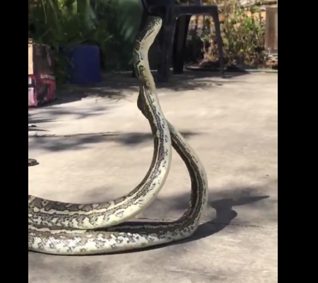 As imagens registraram répteis se entrelaçando em uma espécie de luta, ou então em uma espécie de aconchego. Confronto entre pítons pode levar horas, na tentativa de ver quem é a mais forte, até que uma delas desista.