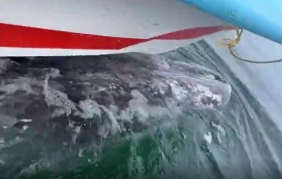 Uma baleia-cinzenta deu mais emoção ao passeio de um grupo de turistas que visitava uma laguna em Guerrero Negro, na costa mexicana banhada pelo oceano Pacífico. Em pelo menos dois momentos, o enorme mamífero se posicionou embaixo do barco da expedição e o ergueu com o dorso.