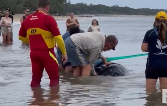 A união faz a força e dessa forma, banhistas se juntaram em uma praia da Austrália para ajudar a salvar uma baleia-anã que encalhou. O resgate aconteceu na Praia Hervey Bay no dia 20 de maio.